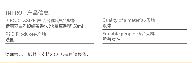 Elizabeth Arden/雅顿:绿茶香水(含羞草香型)