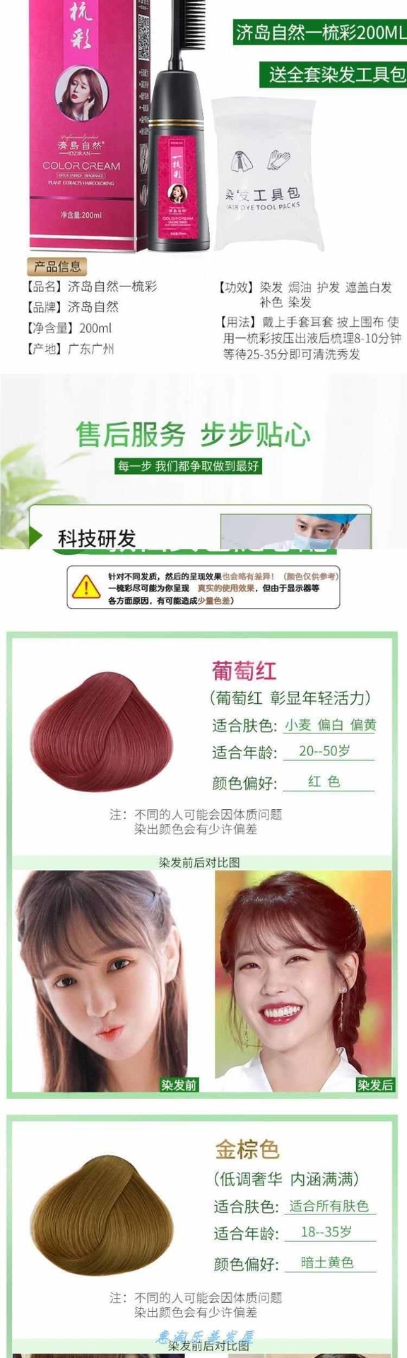 颜色分类:黑色(盖白发),咖啡色(盖白发),栗棕色(盖白发),葡萄红(盖白发),葡萄紫(盖白发),棕黑色(盖白发),金棕色(不盖白发),棕亚麻(不盖白发)