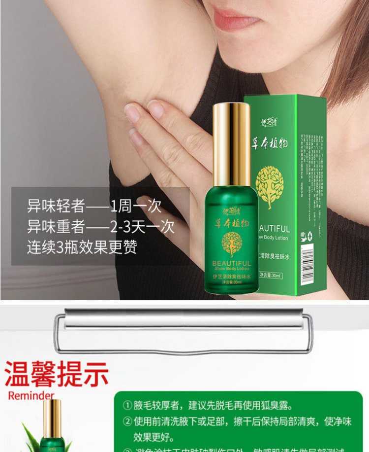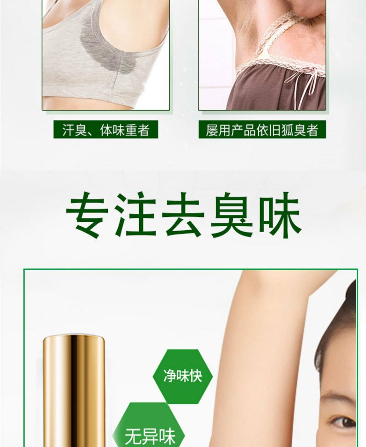 发货很快卖家服务态度挺好的。快递好快呀,一两天就收到货了。包装也很大气,60ml的。收货后晚上洗洗澡就用上了,效果不错,用了好几天了也没有味道了,保持干爽,按摩吸收,无色透明,没异味,不会把衣服弄脏。夏天了,出汗多,出门太尴尬了,都不敢穿吊带短袖,怕有味道。这下好了,可以去穿我美美的小裙子啦[爱心]