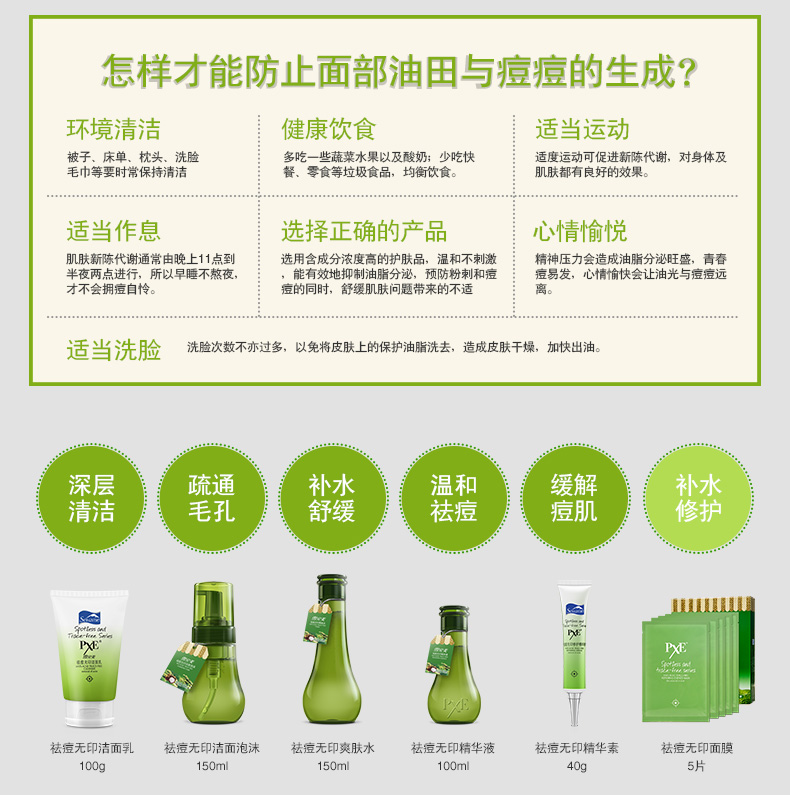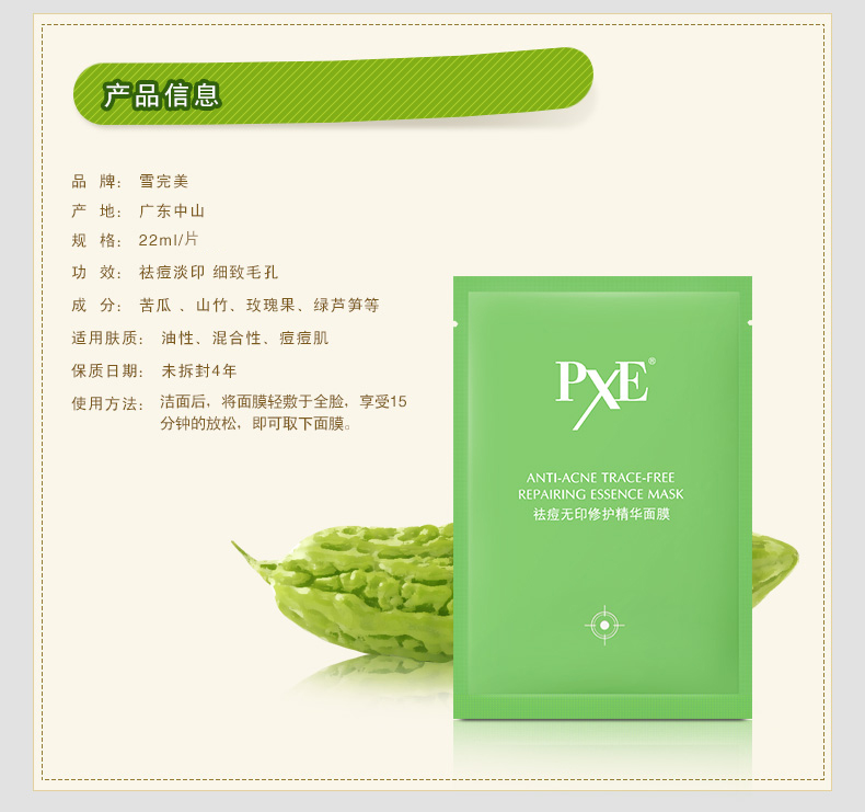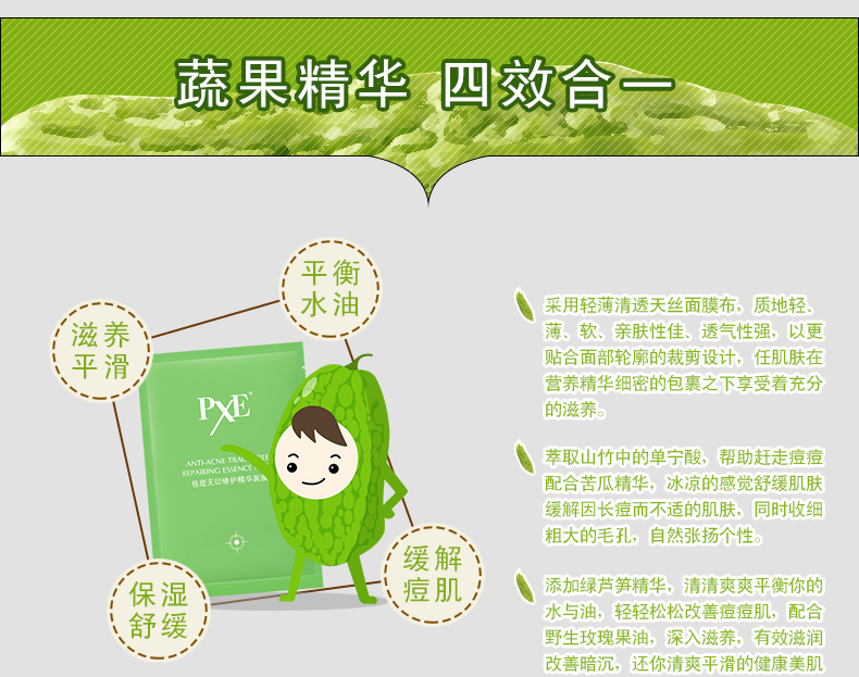 面膜单品:PXE祛痘面膜5片套装