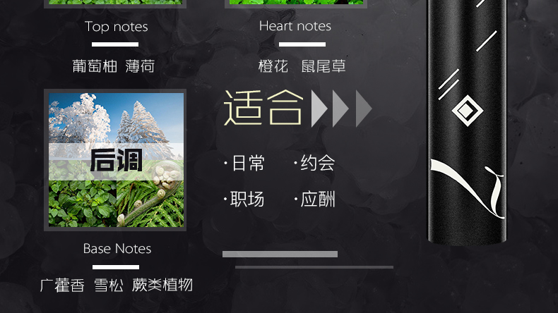 香味:柑橘 栀子 鼠尾草 松木香型 檀香 烟草 广藿香