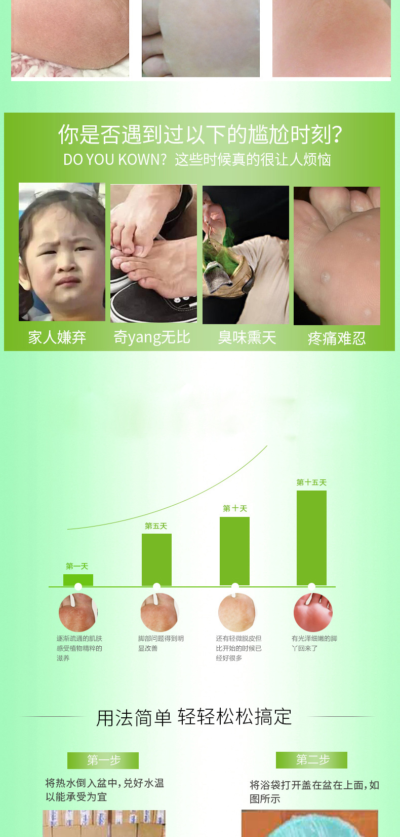 如果糜烂,脱皮,水泡严重的,请用脚气膏修复(原集古草乳膏),待伤口愈合后再泡。或者泡的时候兑点水,减轻疼痛感。