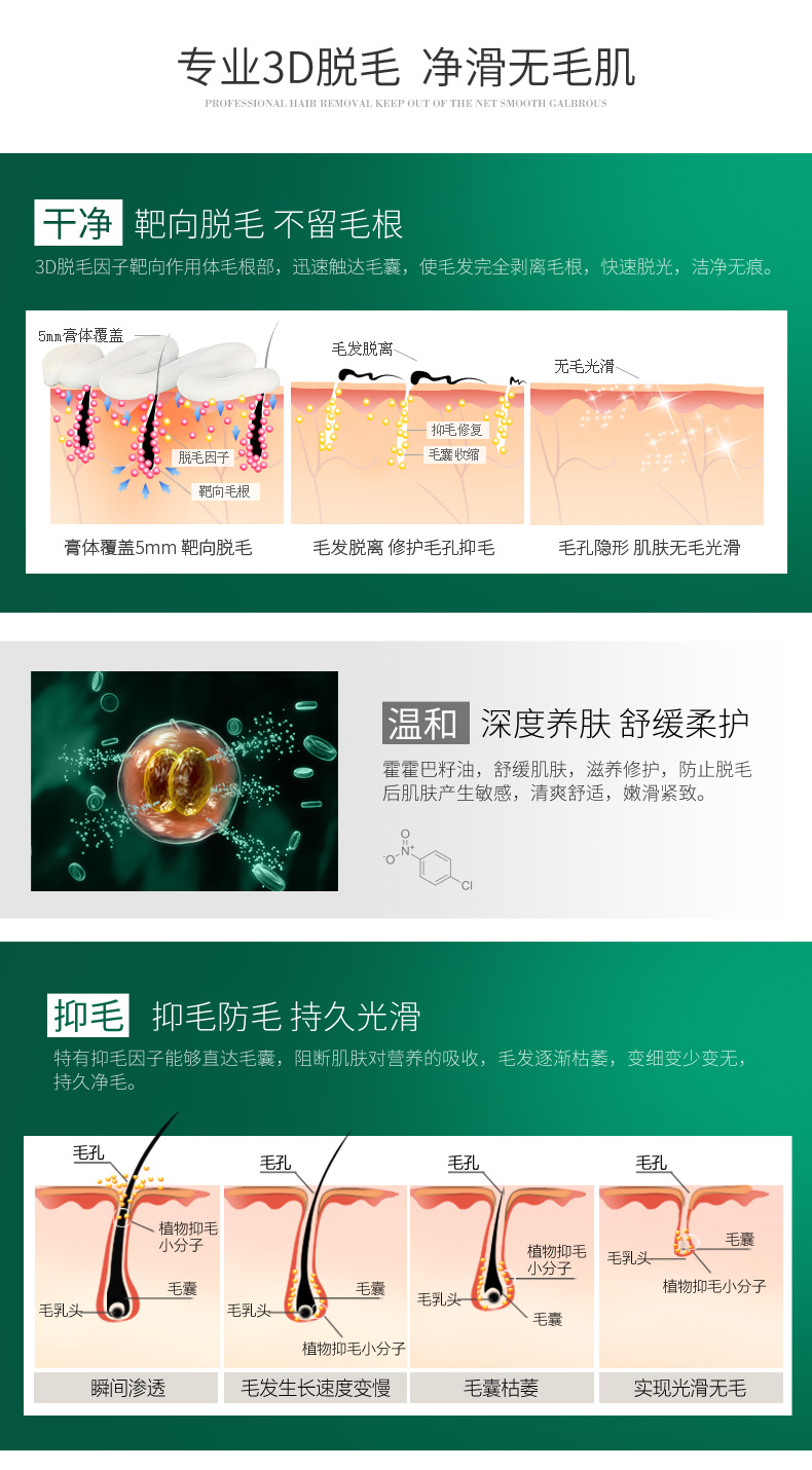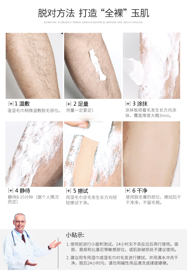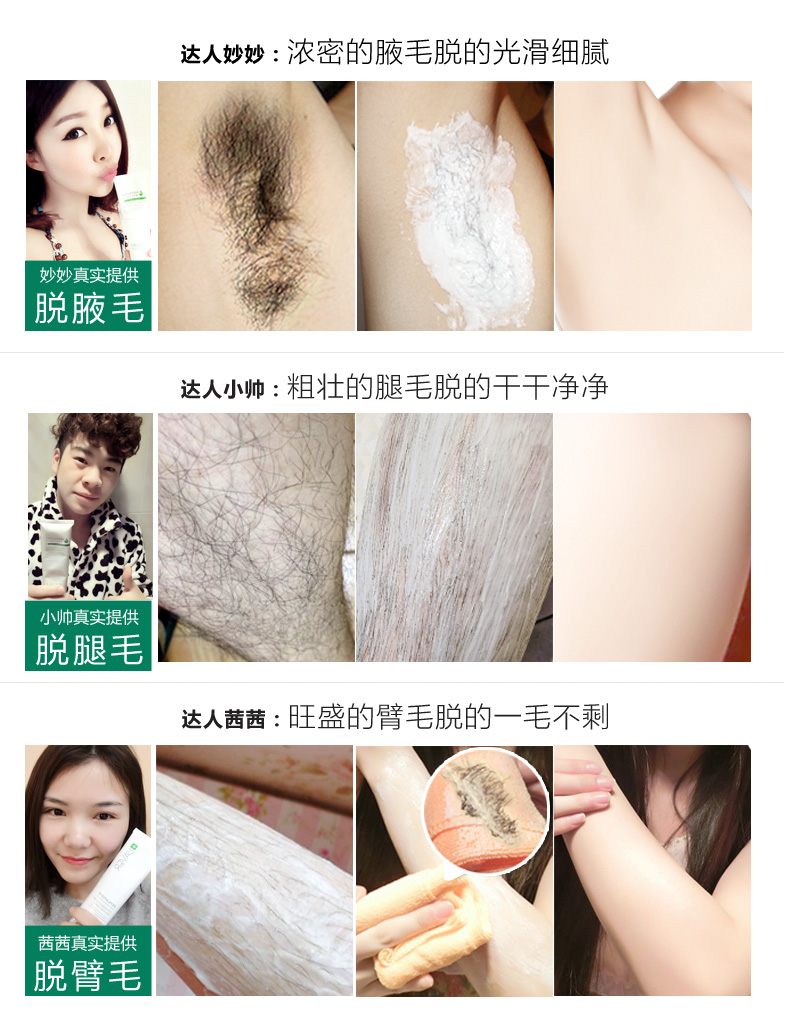 个人情况: 19岁 汗毛过密 从小就不想拥有这样的汗毛了 有一段时间都不想穿短裤呢 使用效果: 好用 效果极佳 推荐多用几次 逸致毛囊繁殖过盛带来的浓密体毛 自从用了这纤丽美 脱毛膏 皮肤又白又亮值得欣赏 特别欣慰 特别说明: 无次痛感 毕竟是温和的 不卖不用不尝鲜 效果只有用过以后才会有的 总结: 很好 推荐购买